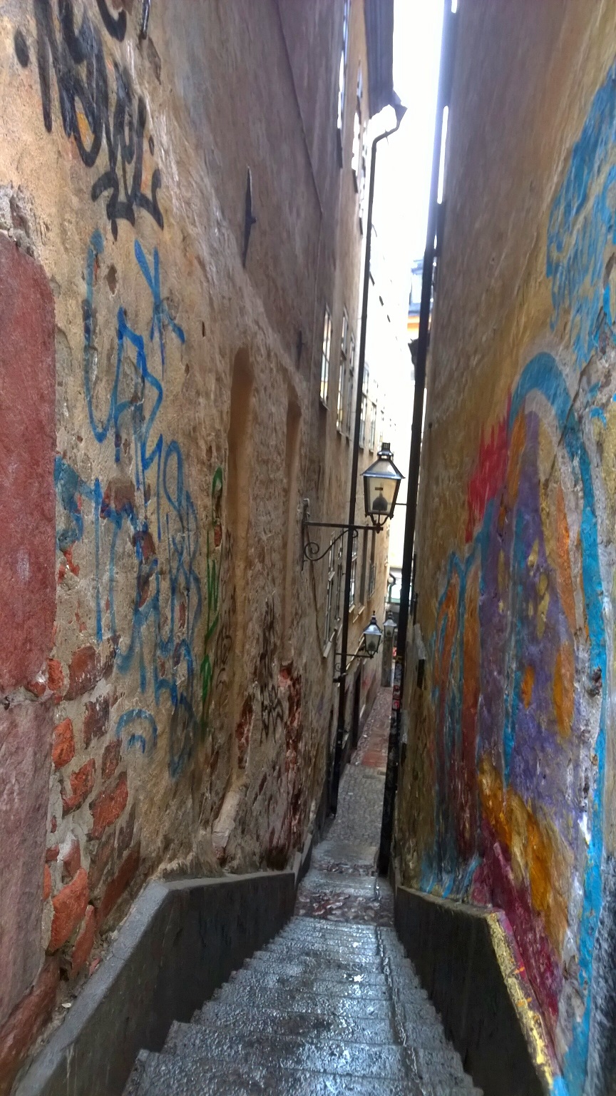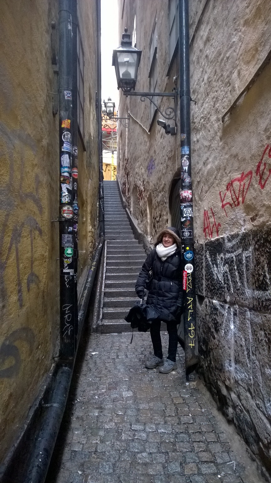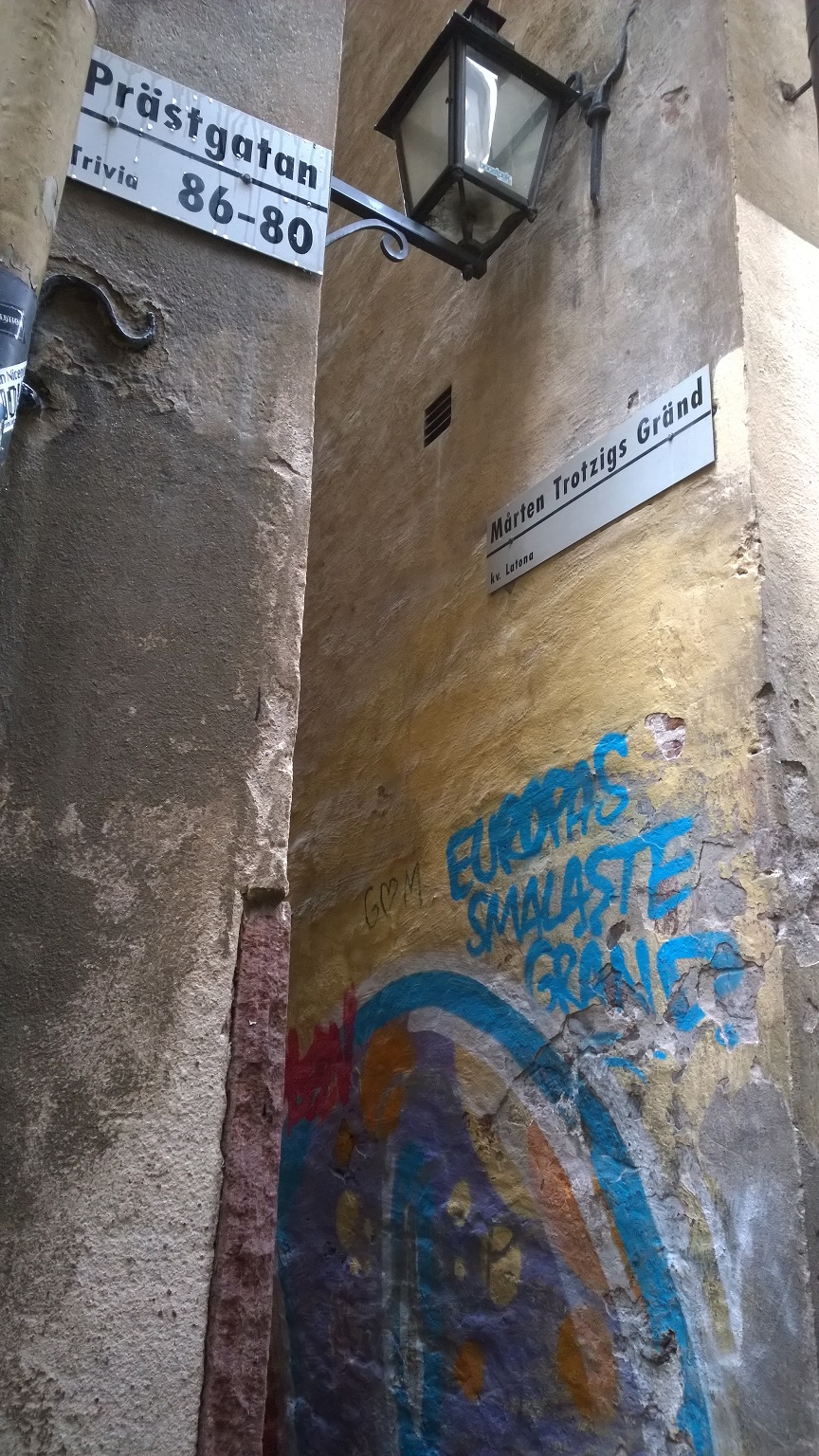 While walking around Gamla Stan (Old Town), we passed the narrowest street / alley in Stockholm, ‘Alley of Mårten Trotzig’ which joins the streets of Prastgatan and Vasterlangatan.